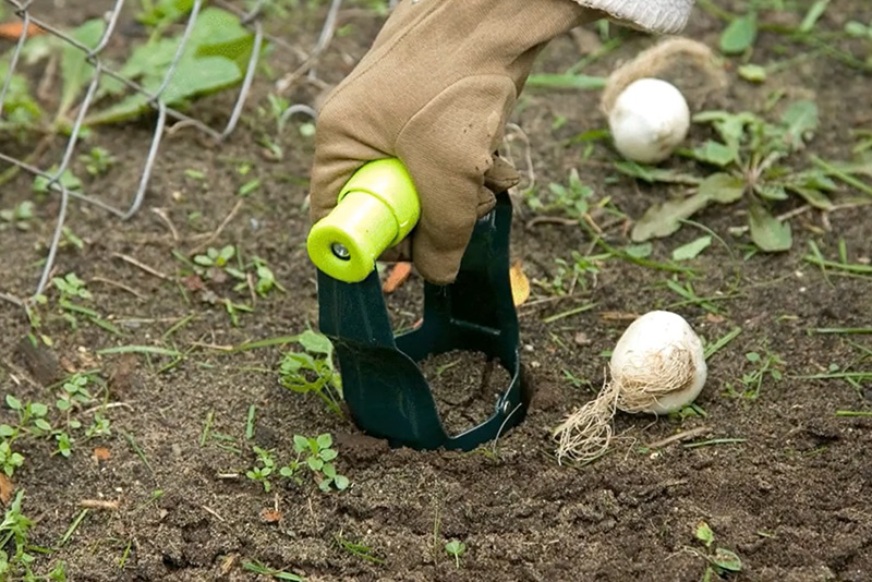 Dig a 3 to 4 inch deep hole, place the bulb into it and cover with soil, you have to keep 3 to 4 inches of space between the bulbs.